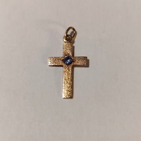 Koko: k 3cm ripustustuslenkin kanssa, leveys 1,5cm. Paino 0,9gr. 585 kultaa. Hyväkuntoinen, kaipaa ehkä pientä kiillotusta. Ullanlinnasta voi noutaa.