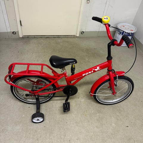 Lasten upea retro polkupyörä 16" vaaleanpunaisella rungolla.