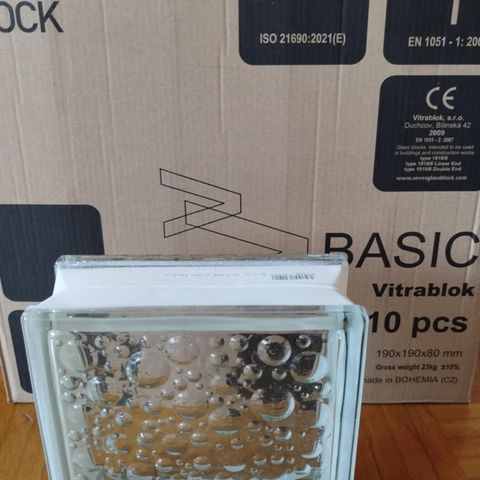 Lasitiili, koko 190 x 190 x 80 mm. Kirkas, hieman aaltokuvioitu lasipinta. Soveltuu esimerkiksi seinä- ja väliseinärakenteisiin tai valoa läpäiseviin rakenteisiin sisä- ja ulkokäytössä suunnittelun ja valmistajan ohjeiden mukaan.