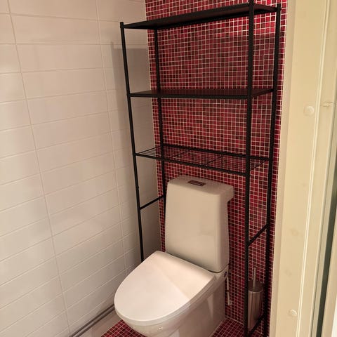 En tiedä mistä on peräisin, koska olen ostanut aikoinaan Torista. Olen pitänyt kaappia vessassa. Mukaan tulee 2 samanlaista koria mikä näkyy kuvassa. Säilytystilaa on hyvin, jos korin laittaa sivuttain. Kaapin tila jakaantuu samalla tavalla tasolevyllä.