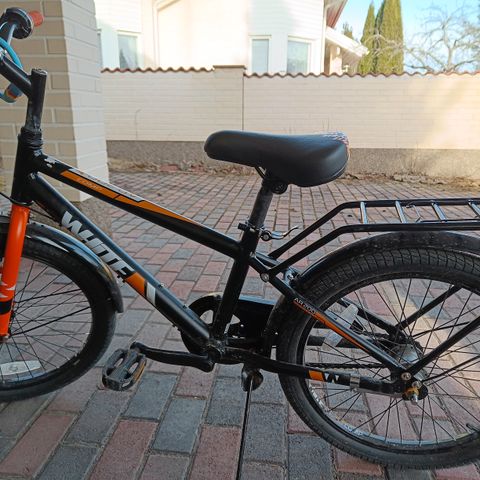 Lasten polkupyörä 20" renkailla. Violetti runko, jossa sydänkuvioita. Pyörässä on lokasuojat, tavarateline takana, ketjusuoja, heijastimet ja käsijarru sekä jalkajarru. Sopii noin 20"-kokoista lastenpyörää tarvitsevalle lapselle arkiajoon ja leikkikäyttöön. Käytönjälkiä on reilusti, mutta kaikki paitsi vaihteet toimii. Pienimmällä vaihteella on kuitenkin hyvä polkea.