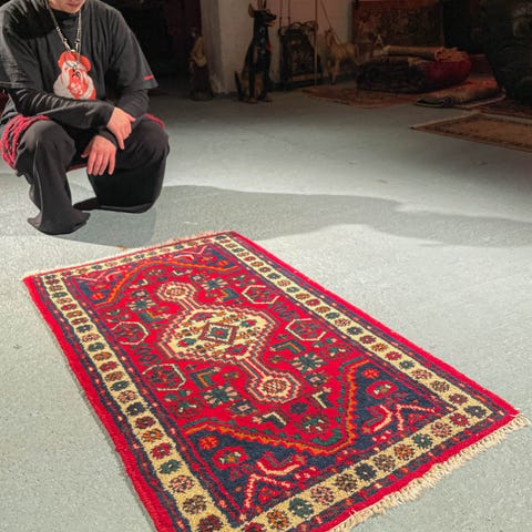 käsinsolmittu itämainen aitomatto villamatto vintage persialainen aito villa hamadan sininen punainn ruskea pitkä käytävä matto käsinkudottu käsin käsintehty käsityö antiikkimatto vintagematto helsinki helsingissä