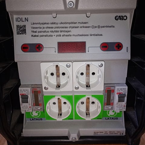 Harju Elekter lataus- ja lämmitysasema. Ollut pari kuukautta käytössä hybrid auton latausta varten. Ollut kiinnitettynä autokatoksen seinään. Täysin toimivana seinästä irroitettu.