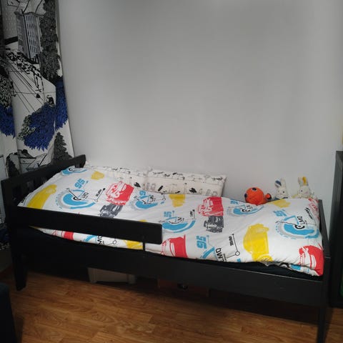 Valkoinen Ikean Minnen juniorisänky, jatkettava. 80x200cm, on käytönjälkeä ja sälepohjan sälenauha on katkennut yhdestä kohtaa, mutta muuten yleisilmeeltään siisti ja tukeva. Pelkkä sänky, ei patjaa mukaan. On purettuna, nouto Hallilasta.