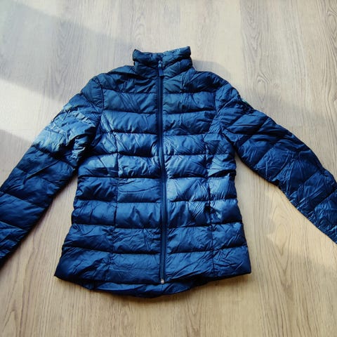 Kappahlin Hampton Republic 27 - malliston musta kevytoppatakki untuvalla. Avotaskut. Takaa hieman pidempi helma. Kainalo-kainalomitta 51 cm, pituus edestä 60 cm, takaa 66 cm, hihan pituus 49 cm. Koko 36/38.