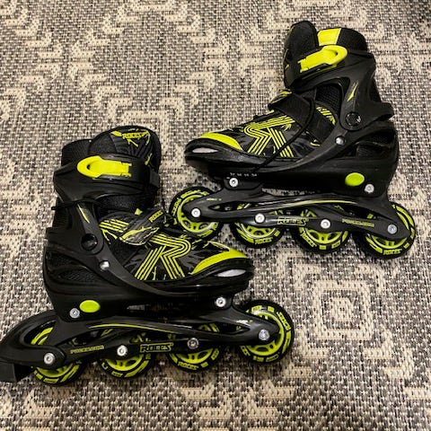 Myydään käytetyt, mutta hyvässä kunnossa olevat mission rullakiekkoluistimet. Renkaat ovat vaihdettu alkuperäisistä pehmeämpiin renkaisiin eli nykyiset renkaat ovat paljon paremmat kuin vanhat. Lisätietoa saa kysymällä.