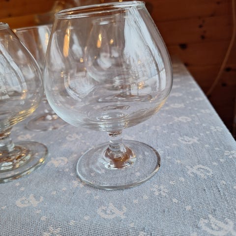 Erittäin siistikuntoiset konjakkilasit. Ovat erehdyttävästi lasin näköisiä, mutta matetiaali ei ole oikeaa lasia. Siitä huolimatta kirkkaat. Lähes käyttämättömät, kaapissa olleet.