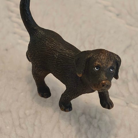 Schleich saksanpaimenkoiran pentu. Oikein hyväkuntoinen leikeissä ollut, tavallista pientä kulumaa/jälkeä maalipinnassa.