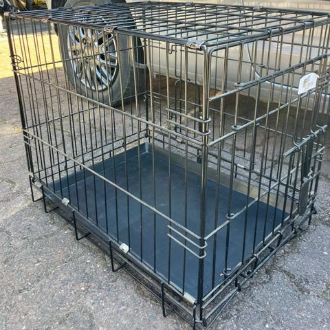 Häkki on valmistettu kankaasta, jossa on pinkit ja violetit paneelit sekä mustat vahvikkeet. Sivuille ja eteen on sijoitettu verkkopaneelit ilmanvaihtoa ja näkyvyyttä varten. Etupuolella on vetoketjulla avattava ovi, ja yläosassa on erillinen luukku. Mitat näkyvät kuvissa, pituus 60 cm, leveys 40 cm, korkeus 42 cm.