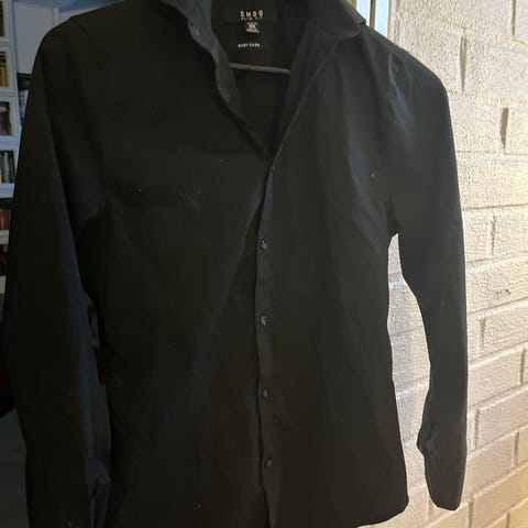 Kevään juhliin musta slim fit-kauluspaita. Koko xs.