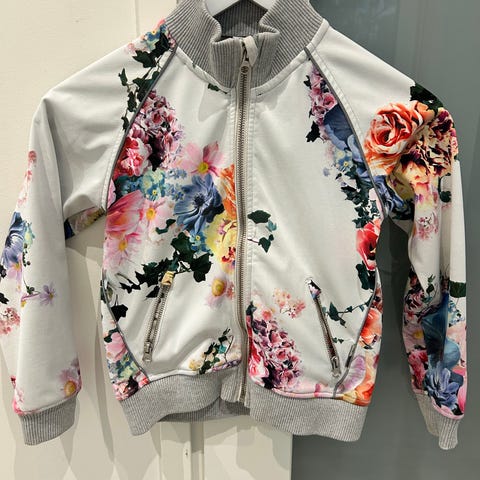 Välikausitakki, joka ollut yhdellä käytössä. Takin kuosi Vertical flowers, koko 128. Käytetyssä, siistissä kunnossa oleva takki. Kuvissa näkyy mm. kaulus ja hihansuut, jotka siistit.