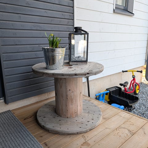 Puinen kaapelikela pöytä valkoinen