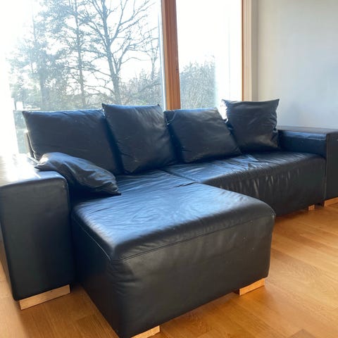 Musta hyväkuntoinen divaani,nahkaa.
