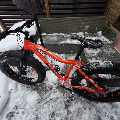 Kona Wo fatbike, runkokoko M. Vuosimalli 2020. Käytön jälkiä rungossa