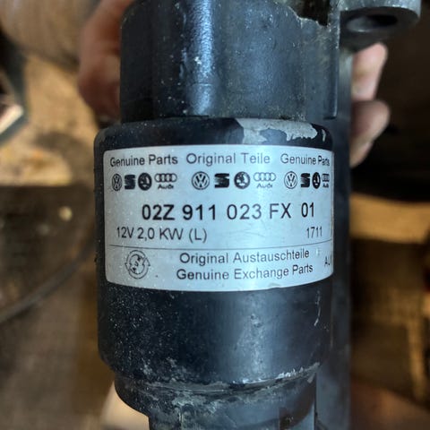 Volkswagen starttimoottori. Käytetty osa, jossa virtakaapeli mukana. Purettu toimivana. Hyvä vaihtoehto uudelle. Purettu autosta jonka moottorikoodi AKL