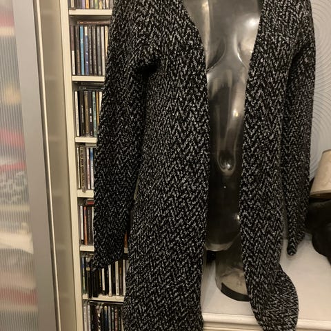 Vaaleanruskea palmikkoneuleponcho, merkki Marie Philippe, koko S/M mutta menee monen kokoiselle, sivuilla napit käden alla