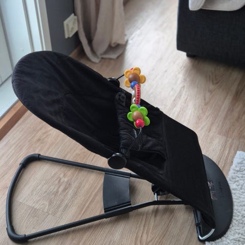 BabyBjörn sitteri irrotettavalla lelukaarella. Lelukaari kulunut, sitteri muuten hyvässä kunnossa.