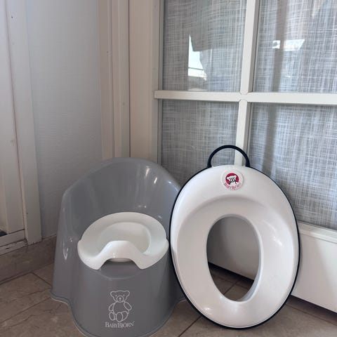 Baby björn lasten potta, hoitoalusta ja vauvan kylpyamme.