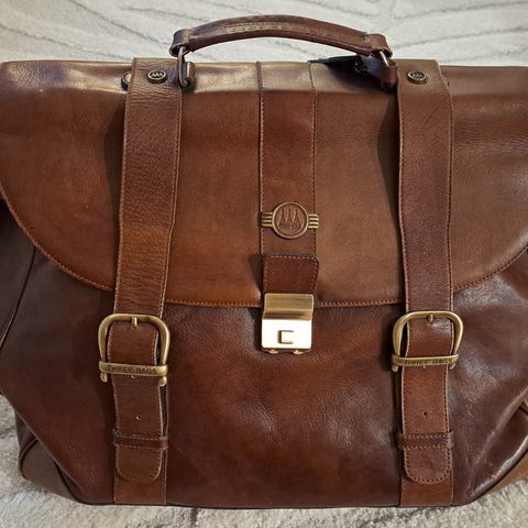 Viikonloppulaukku laadukkaasta antiikkinahasta unisex malli. Sisällä kaksi taskua, samoin ulkopinnassa. Koko suljettuna 550 mm x 310 mm x 200 mm. Tuote on uusi ja käyttämätön. Ovh. 189 - 239 €.