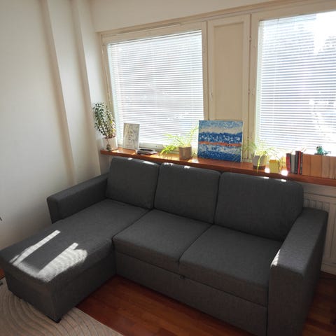 Sohva ollut vierashuoneessa, jota ei juuri ole käytetty, lapset ovat yöpyneet max 5 kertaa sohvalla.