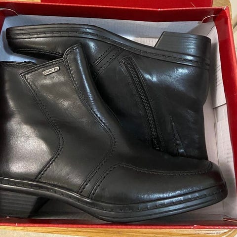 Gaborin lämpimät, vuorilliset nahkanilkkurit, koko 41 (UK 7.5). Väri musta. Nauhallinen malli, korko 4,5 cm. Pohjassa kuviointi paremman pidon takaamiseksi. Kenkien kunto erinomainen, hyvin vähällä käytöllä olleet.