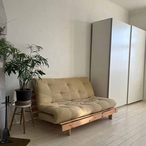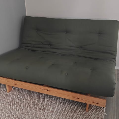 Tilanpuutteen vuoksi myydään n. puoli vuotta vanha, vain muutaman kerran käytetty eli melko uudenveroisessa kunnossa oleva Karup Roots 140 futon-vuodesohva, jonka saa istuinasennosta lounge-lepotuoliksi ja siitä makuuasentoon.