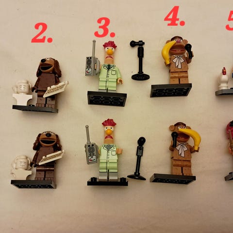 #minifigures#lego#muppets#collectibles#kermit#statler#Miss piggy#waldorf#gonzo#beaker#animal#swedish chef