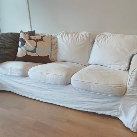 Käytetty sohva ja rahi. Sohvassa käytönjälki mutta ei näy ulospäin. Rahi hieman eri sävyä