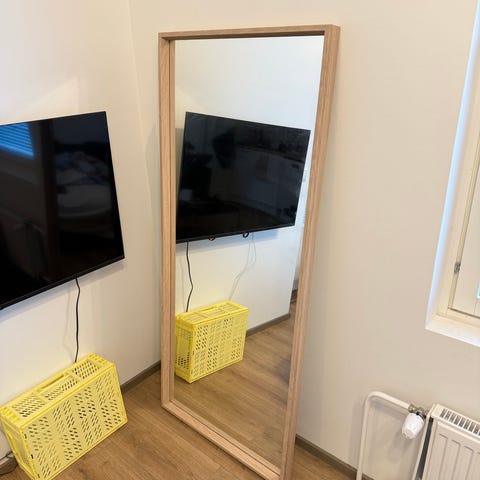 Musta kokovartalopeili. Mitat leveys 40cm, korkeus 160cm. Nykyään taitaa olla hieman vastaava peili Ikea Nissedal. Muutamia naarmuja. Nouto Nokialta, nopea nouto etusijalla.