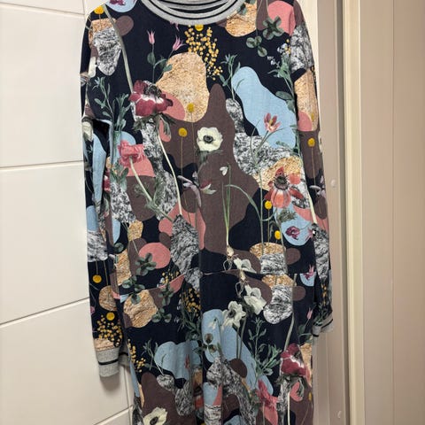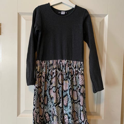 Kiva koirakuosi ja yksivärinen yläosa. 134/140 mutta tälle merkille tyypillisesti sanoisin enemmän 128. Siisti kunto. Ks. Edullisesti myös paljon muuta yhdellä lapsella ollutta vaatetta.