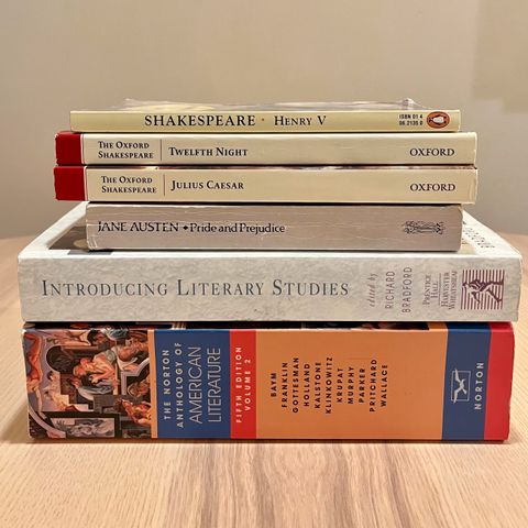 Shakespearen näytelmiä. Englanninkielisten kunto hyvä, suomalaisten kohtuullinen, kansissa jälkiä ja osumaa.