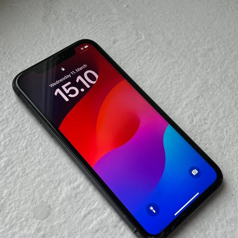• iPhone 11: etulasi rikki, lukittu → varaosiksi