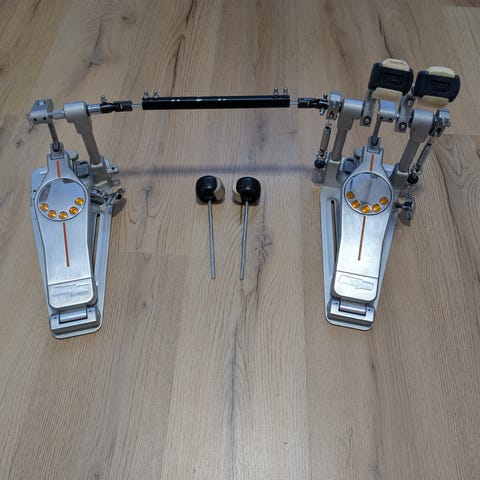 Proline tuplaketjuvetoiset tuplapedaalit. Halvat nämä ovat olleet, mutta halvalla ne lähteekin. Vasen poljin hieman väljä, mutta kyllä näillä joku soittelee. Demon driveihin verrattuna ihan paskat, mutta ne maksaanin 20x enemmän.