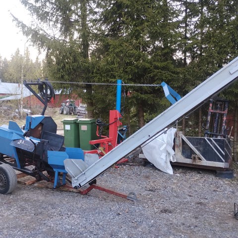 Palaxin combi johon lisätty sähkömoottori. Lisänä myös siirto kärry/alusta josta saa helposti irti. Kone on hyvin tasapainossa kärryillä niin pystyy siirrellä mönkijällä tai ruohonleikkurillakin yms. Neljään halkaiseva terä korkeus säädöllä. Kätevä kone myös valmiiksi sahatuiden pöllien halkomiseen
