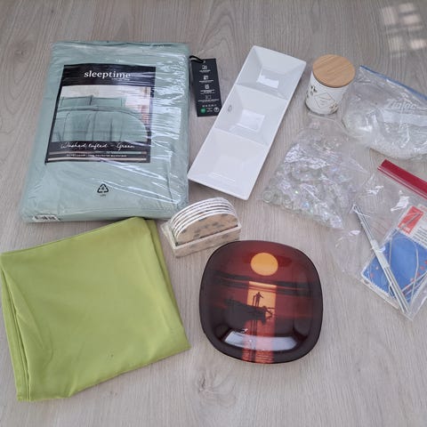 Myynnissä on kuvien mukainen Kotikulta saunasetti sekä koristetyyny ja lusikat, kaikki uutena.