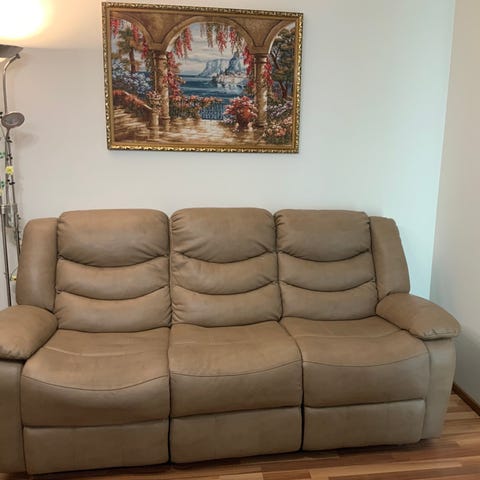 Upea valkoinen divaani. Ihana köllötellä ja hieno.