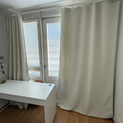 Avaamattomat Verhot, 2 kpl, vaaleanharmaa/laskosnauha, 145x250 cm