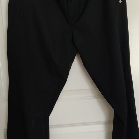 K-Citymarketin naisten housut koossa XL. Väri musta. Pitkälahkeiset, suoralahkeiset housut arki- tai vapaa-ajan ulkokäyttöön. Materiaali on kevyttä ja laskeutuvaa. Soveltuvat esimerkiksi perushousuiksi jokapäiväiseen ulkokäyttöön.