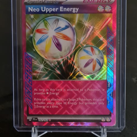 Pokémon Neo Upper Energy 162/162. Kortti suoraan pakasta laitettu sleeveen ja toploaderiin. Kunto NM/M.