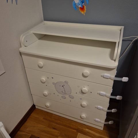 Myyn Nordlin kalusto settinä, kaksi pöytää yksi lelulaatikko ja kaappi. Jakkarat eivät kuulu mukaan.
