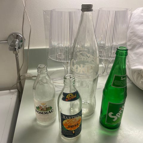 Vanhoja lantrinkipulloja, käytetty tietääkseni ravintoloissa limujen lantraamiseen?