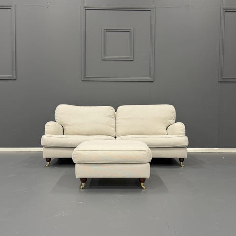 Myynnissä Bloomimington Howard Lyx sarjan 3:n istuttava sohva. Howard Lyx sarja on klassinen ja elegantti. Kalusteissa etujalat ovat tyylikkäät messinkipyörälliset. Sohvaan kuuluu muoviset lattiasuojat jotka suojaavat lattiaa. Kaarevat muodot ja paljon kauniita yksityiskohtia, ja niiden tarkkaan mietitty design antaa olohuoneelle ylellisen ja kutsuvan ilmeen. Sohvan runko on ehjä. Istuin ja selkätyynyn kankaat ovat irrotettavissa pesuun. Ryhmä on ollut 2:n jo hieman varttuneemman ihmisen taloudessa uudehkossa omakotitalossa. Huomioitavaa sohvan kunnossa: Pesusta huolimatta uutta etsivä saattaa tietyssä valossa havaita käsinojien kankaassa pientä normi käytössä tullutta tummentumaa. Kyseinen tummentuma huomioitu hinnassa. Sohvan yleisilme todella siisti. Uuden sohvan normihinta: 1499,99€. Tämän hetkinen alennushinta: 1199,99€. Meidän hinta: 489€.