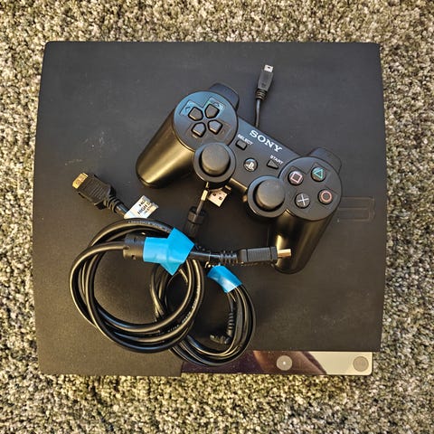 Valmistaja: SonyMalli: Playstation 3 SlimMukana ohjain, virtajohto ja HDMI-kaapeliKierrätyskeskuksen tarkistama tuote.
