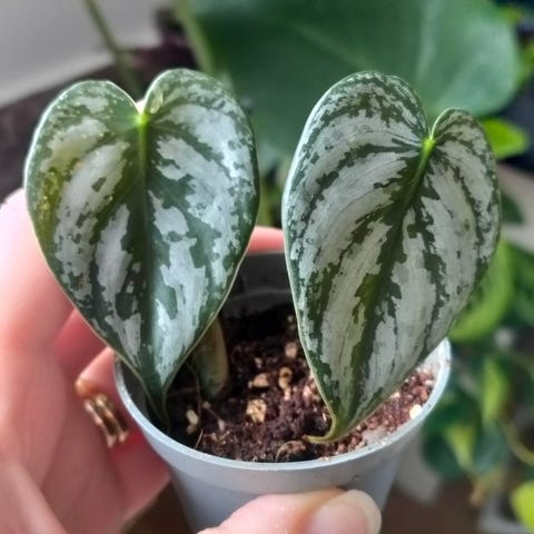 Palmuvehka muovisessa kukkaruukussa. Kasvi on istutettu multaan ja siinä on useita vihreitä lehtiä yhdessä varressa. Sopii sisätiloihin huonekasviksi esimerkiksi ikkunalaudalle tai pöydälle. Kasvi tarvitsee säännöllistä kastelua ja valoisahkon kasvupaikan ilman suoraa paahdetta.