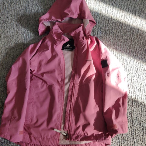 100% vedenpitävä, hengittävä välikausitakki koko 130. Yhdellä lapsella yhden kauden ollut, en löydä mitään moitetta. Väri ihana lila. Ovh 80€.