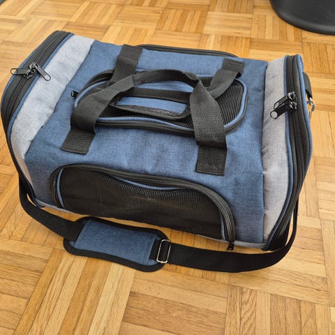 Muovinen harmaa kuljetuslaatikko lemmikille. Laatikossa on kantokahva päällä ja edessä ritilällinen ovi ilmanvaihtoaukoilla. Pohja on muotoiltu siten, että se on helppo puhdistaa. Soveltuu esimerkiksi kissan tai pienen koiran kuljettamiseen lyhyillä matkoilla, eläinlääkärikäynneillä tai säilytykseen kotona.
