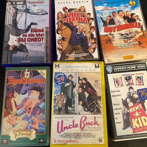 Kuvan VHS-kasetit. En tiedä toimiiko enää, en ole testannut. Siistissä ja hyvässä kunnossa ulkoisesti.