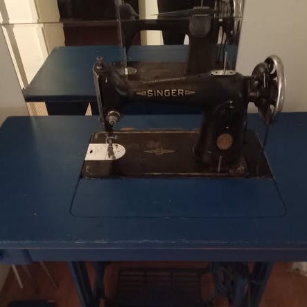 Singer 347 ompelukone turkoosilla rungolla + ompelupöydällä. Testattu - ei toimi kunnolla. Mahdollisesti hihna luistaa. Myydään pilkkahinnalla kunnostettavaksi/koristekäyttöön/ilman konetta pöydäksi. Nouto Vehniä.