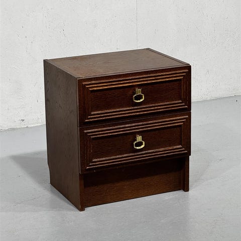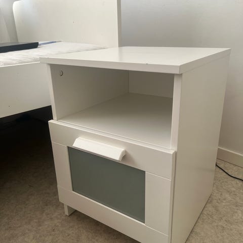 Askon yöpöytä, jossa on värivirhe ja kulumaa.