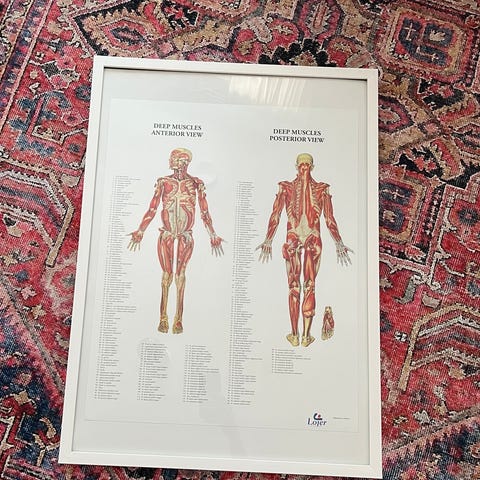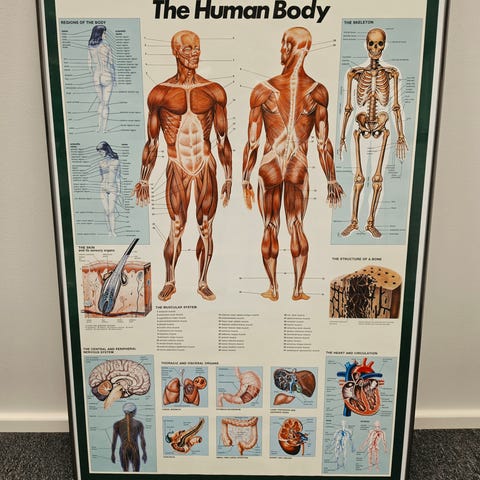 Anatomiajulisteet luusto- ja lihasjärjestelmä, kehystetyt